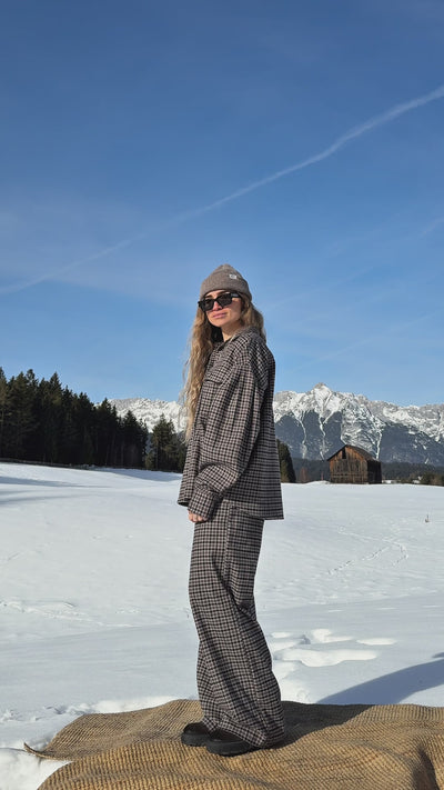 Robert's shirt features a beautiful Blue Plaid check pattern in harmoniously interwoven shades of blue and gray. It fastens with a button-up front, features a delicate collar, and wide sleeves with darts. It features two chest pockets. The cotton fabric is very soft and pleasant to the touch.