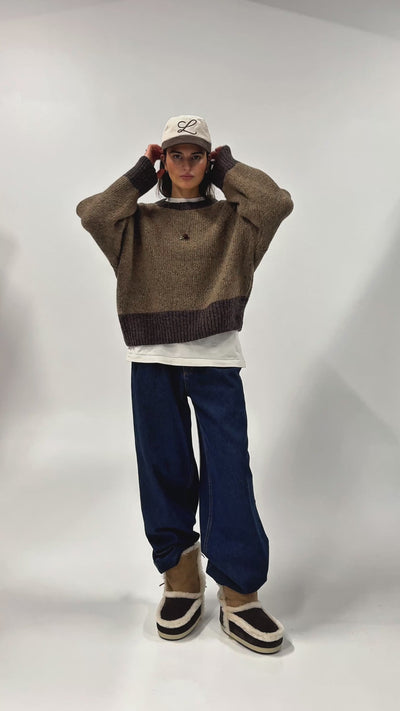 Sweter Cloud Rim to nasz bestseller, a „Rim” w nazwie oznacza ściągacz w kontrastującym kolorze. Wełniany model o grubym splocie został wydziergany w Polsce. Przędza sprowadzona z Włoch ma kolorowe nobki. Luźny fason swetra sprawdzi się na każdej sylwetce. Sweter jest bardzo ciepły i miękki w dotyku.